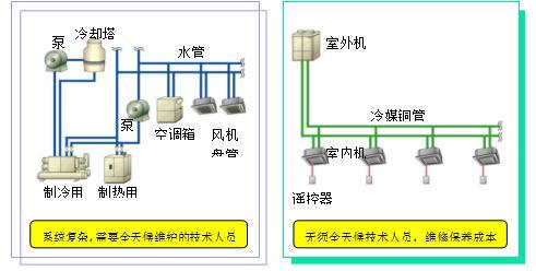 VRV變頻機(jī)房空調(diào)系統(tǒng)冬季無(wú)防凍運(yùn)行問(wèn)題,而水系統(tǒng)機(jī)房空調(diào)到了冬季水泵必須24小時(shí)運(yùn)行,否則會(huì)凍壞水管及設(shè)備,浪費(fèi)大量能源。