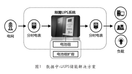 首先,作為儲能應用的UPS須先擴容電池組,讓全電池組參與儲能。電池容量的設計一定要保證60%作為儲能來用,剩余的40%作為UPS后備供電,如此才能讓電源充分滿足用戶的剛性用電需求。這套設計方案改造工程量小,系統收益率高,特別適用于數據中心、大型商業體。數據中心UPS儲能解決方案如圖1所示。