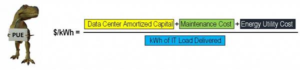 圖6(c)根據他們的活動模型,為每一個客戶分配美元/千瓦時。“數據中心交付成本”是報告的成本效益真實的方式,可能比PUE對于高級管理層更有意義。例如,在第一個新數據中心的第一個兩到三年的壽命中,資本成本分量起支配作用不管PUE和運行效率。