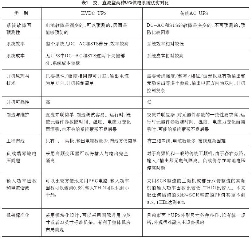 交、直流兩種供電系統優劣對比見表1。