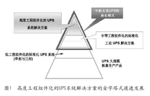 同時,這種高度工程組件化提高可靠性和適用性的方法,也順應了工業4.0的浪潮[工業四代(Industry4.0)是指利用物聯信息系統(Cyber-PhysicalSystem,簡稱CPS)]將生產中的供應、制造及銷售信息的數據化、智慧化,最后達到快速、有效、個人化的產品供應。圖1給出了高度工程組件化的UPS系統解決方案的金字塔式的遞進發展情況。