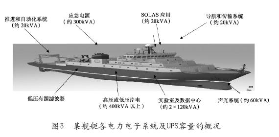 背景情況:黨的十七屆五中全會把發展海洋經濟提到了國家戰略的高度,明確提出了提高海洋開發、控制、綜合管理能力。而海洋工程裝備是開發利用海洋資源的物質和技術基礎,關系著國家的能源戰略安全。2011年9月16日,國家發改委、科技部、工信部和能源局印發了《海洋工程裝備產業創新發展戰略(2011-2020)》,提出要綜合運用稅收優惠和優化金融服務支持海工企業發展。全球海工行業市場規模350億~450億美元。預計未來5年年均市場規模約40億~50億美元。圖3為某艦艇各電力電子系統及UPS容量的概況。