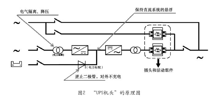 背景情況:上世紀90年代,隨著DCS的引進,電力行業開始批量使用UPS,發現UPS里的電池故障率高,國內外的變電站、電廠等有直流屏的用戶,對UPS電池的管理提出了一個設想,希望用“UPS機頭”,即UPS不配電池和充電,直流端直接接到直流屏上。這樣用戶的直流維護人員保證了電池的安全,提高了UPS的可靠性,也降低了電池的投入。“UPS機頭”的原理圖如圖2所示。