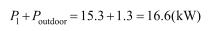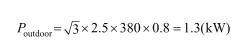 例如,假設在T1工況(溫帶氣候,環境溫度在-20~45℃),對于散熱量為38kW風冷室外機,其輸入制式為380~415Vac/3Ph/50或60Hz,滿載電流為2.5A,功率因數取0.8,則室外機功率為