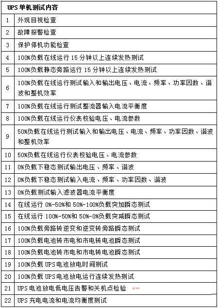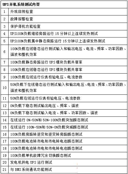 主要的單系統測試包括:高壓系統、低壓系統、不間斷電源系統、發電機系統、冷卻系統、冷凍系統、控制系統等的測試。