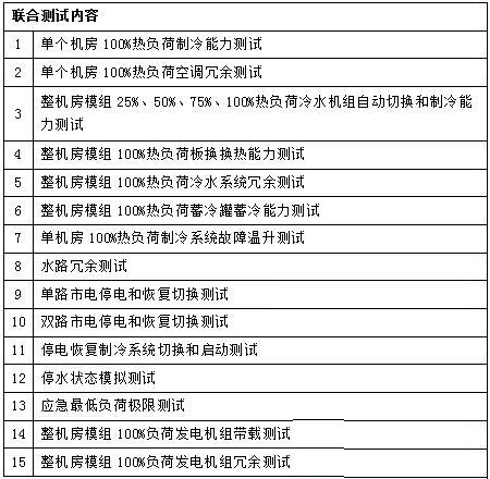 聯合測試指數據中心所有機電系統作為一個整體進行測試,通過全額假負載模擬真實運行時的各種運行狀態及故障模式時的各種狀態。進行全額假負載投入的成本非常大,如無法獲得高額預算可減少假負載的數量,但不能少于25%的帶載量。