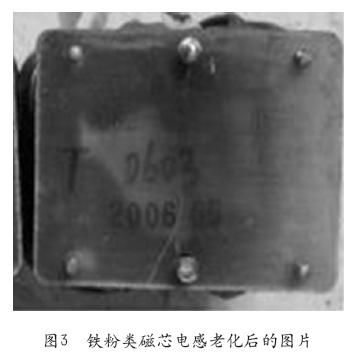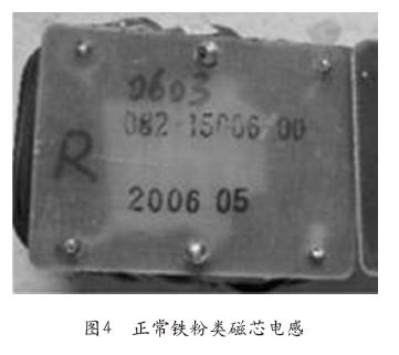 ②一般生產廠商由于成本原因,電感磁芯往往選用鐵粉類的磁芯。鐵粉類的磁芯有一個致命缺陷,即老化問題。這類磁芯隨著使用時間的推移,磁芯性能會逐漸下降,電感量會逐漸降低。當電感量降低到一定程度時,電感就會完全失效,導致機器故障。一般三年左右,鐵粉類磁芯的電感的壽命就差不多了。當機器長時間帶重載或工作環境溫度比較高,電感老化問題會更嚴重。UPS鐵粉類電感老化后的照片見圖3。正常鐵粉類磁芯電感見圖4。
