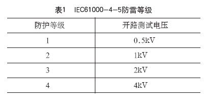雷擊是導致電子產品故障的主要原因之一。IEC61000-4-5對電子類產品防雷等級定義如表1所示。UPS防護等級有按2級設計的,也有按4級設計的,即在電源輸入端口放置壓敏電阻或氣體放電管來吸收雷擊脈沖能量,進而避免電源內的半導體器件損壞。