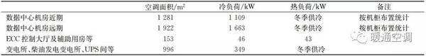 數(shù)據(jù)中心機(jī)房負(fù)荷在設(shè)計時考慮15%的冗余,各功能房間空調(diào)冷熱負(fù)荷見表2。