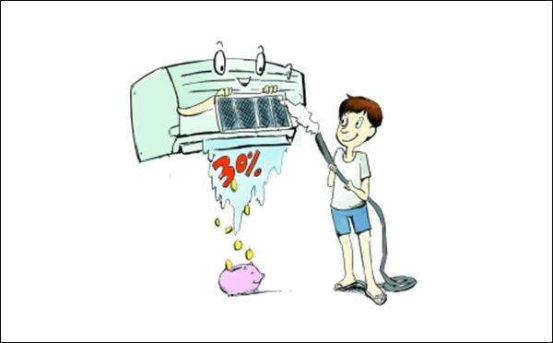 太多的灰塵會塞住網孔,使空調加倍電費。所以應當定時清洗過濾網除塵,一般2~3個星期清洗一次。
