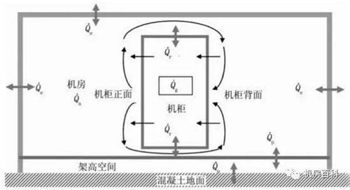 簡化的數據中心傳熱模型下圖所示,以數據機房作為一個封閉的傳熱系統,作如下假設: