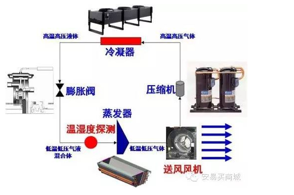 構成基本的制冷系統主要有四大部件:壓縮機、蒸發器、冷凝器、膨脹閥。