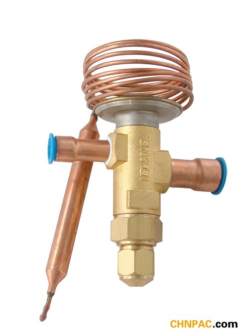 3、脹大閥的品種:(內平衡、外平衡) 效果于熱力脹大閥體內傳動膜片下部的壓力為節省后的蒸騰壓力(這一壓力經過傳動桿和傳動片的縫隙而進入膜片下部分空間)這種結構稱為內平衡式脹大閥。 效果于熱力脹大閥體內傳動膜片下部的壓力不是節省后的蒸騰壓力,而是經過外接平衡管將蒸騰器出口端的壓力引進傳動膜片下部空間結構的閥門、稱為外平衡式熱力脹大閥。 與內平衡式脹大閥比較,外平衡式熱力脹大閥的過熱度要小得多,所以選用外平衡式熱力脹大閥時,能充分發揮蒸騰器的傳熱面積的效果和進步制冷設備的效果,在蒸騰器阻力較小、壓力丟失不大的情況下,可選用內平衡式熱力脹大閥;當蒸騰阻力較大,壓力丟失比較大或具有液體分配器時,應選用外平衡式熱力脹大閥。選用分配器的,一般都選用外平衡脹大閥。 在專用空調機中選用的通常是外平衡式熱力脹大閥。熱力脹大閥雖僅僅一個很小的部件,但它在制冷體系中的效果必不可少,所以它與制冷緊縮機、蒸騰器、冷凝器、并稱為制冷體系四大部件。