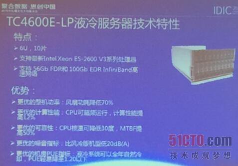 據曙光沈總介紹,在數據中心中采用整機柜TC4600E-LP即可獲得顯著收益,比單機柜規模小的話,配套設施的部署相對劃不來。液冷TC4600E-LP服務器真正做到高密度、高可用性與高效能“三高兼得”。