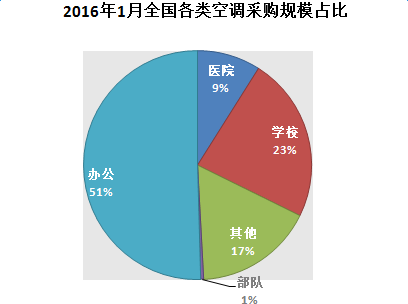 2016年1月全國(guó)各類(lèi)空調(diào)采購(gòu)規(guī)模占比